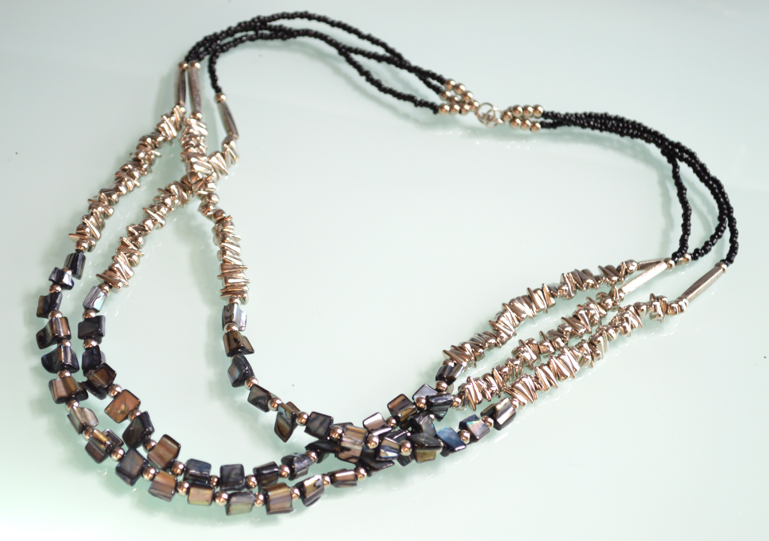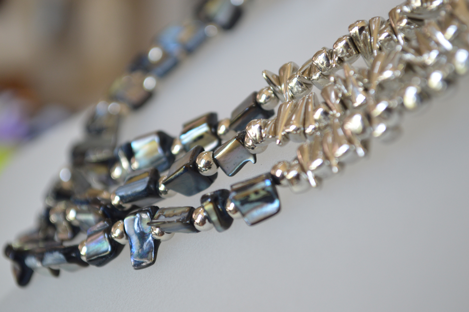 Abalone shell and silver beads work together to create a beautiful and elegant multi strand necklace. This necklace will be any outfit to life. A great piece for casual or formal occasions.